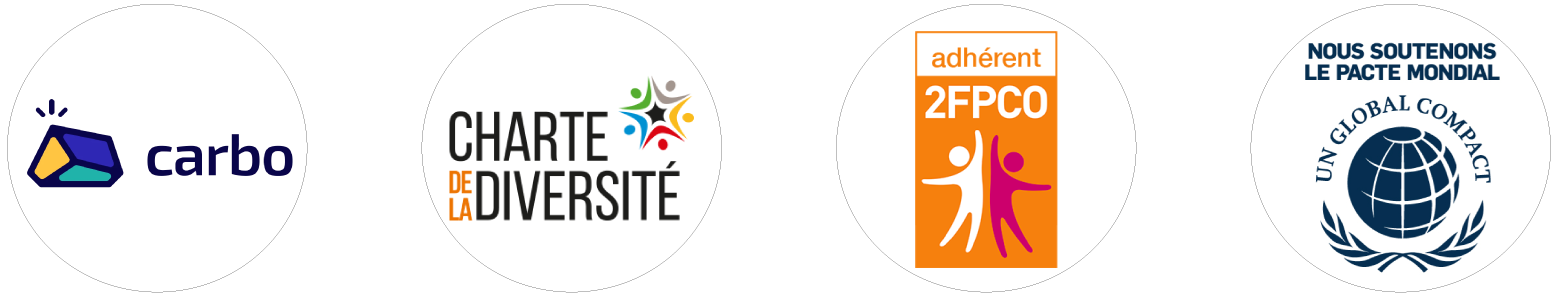 Nous sommes aussi signataires de différentes chartes en lien avec nos engagements, et participant du Pacte mondial des Nations Unies.